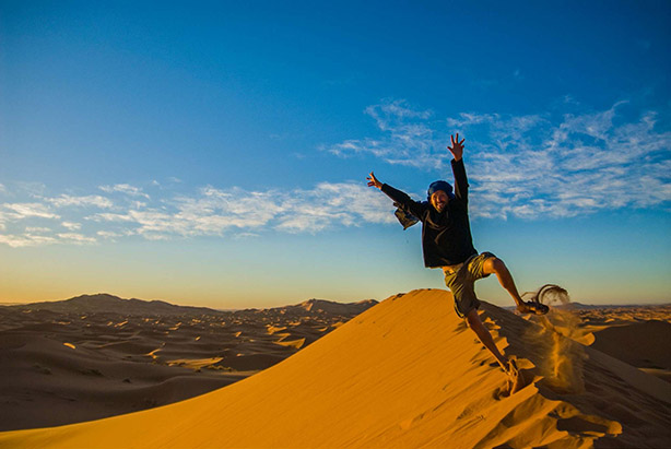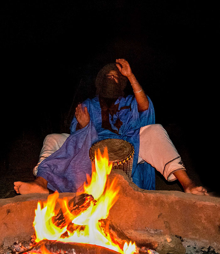 Efter en heldag i Merzouga med besök i Gnawa Village, musik och hemmagjord pizza är det dags att kliva upp på kamelerna och rida ut över sanddynerna. Där väntar eld, musik, solnedgång och middag.