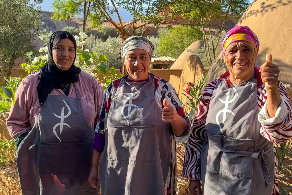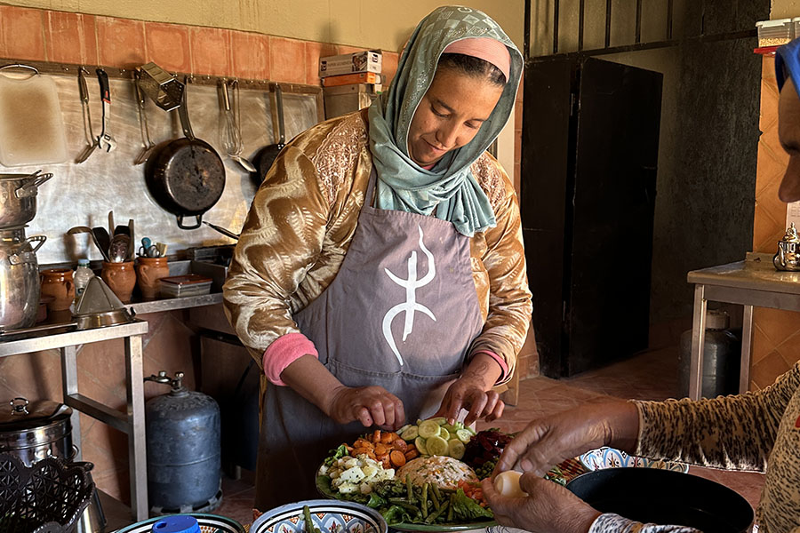 Men Fatima är inte ensam, alla kvinnors roll i Ait Chribou är att se till att hålla familjen mätt och vi har Aysha, Aysha och Senna som också är lokala kockar i vårt kök.