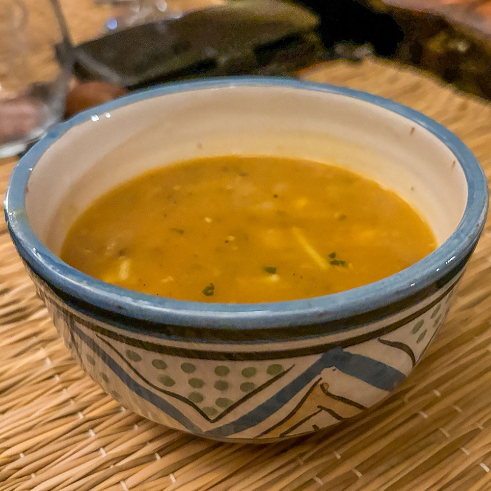 Får jag själv välja en favorit så vill jag plocka fram Harira, en av Marockos mest kända soppor. Det är en redd buljongbas med kikärtor och linser i. Till soppan äts ofta något sött, vanligast är dadlar. Under Ramadan bryts fastan varje kväll med just Harira.